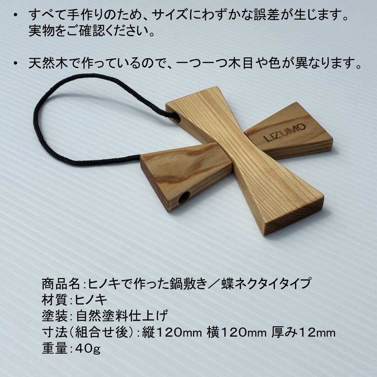 鍋敷き ヒノキ 無垢 蝶ネクタイタイプ 断熱パッド|職人手作り 木製 キッチン・アウトドア・キャンプにも最適
