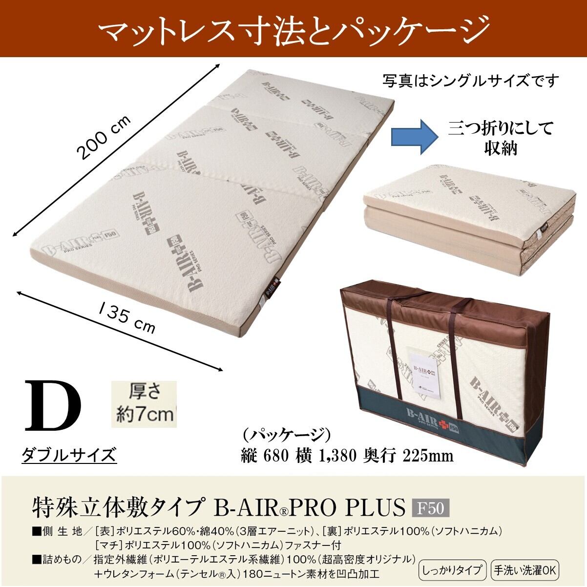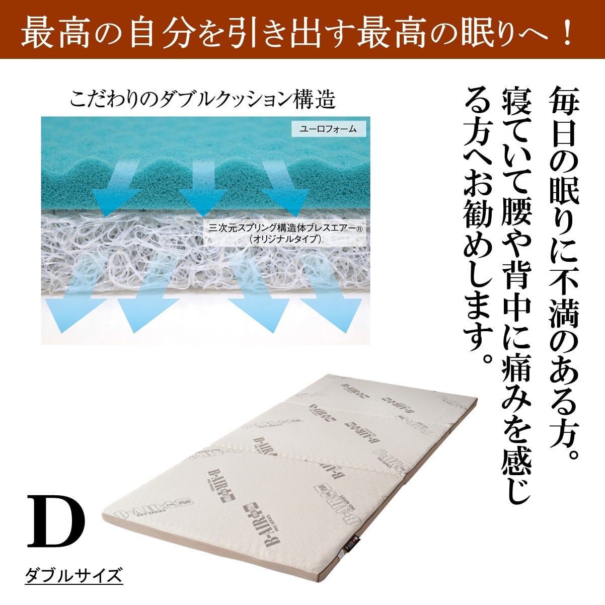 高反発マットレス B−AIR+F50 ダブル 薄型 三つ折り しっかりタイプ 洗える敷き布団 ブレスエアー ユーロフォーム 安眠 体圧分散 寝姿勢 腰痛の方におすすめ